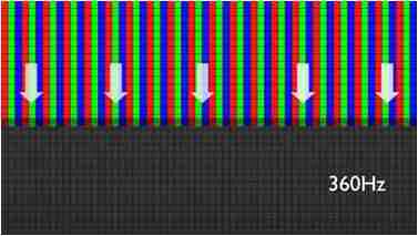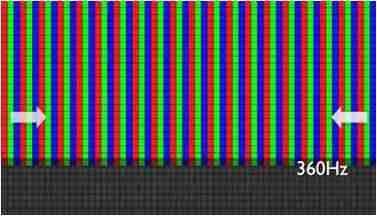 传统液晶驱动是从左到右单向进行,,,在画面更新速度愈来越愈快的情况下,,,,位于驱动线路末端的右下角区域,,,,画素的闸极来不及在短时间内获得足够电压,,,,无法显示出正确的颜色资讯。。。。 |