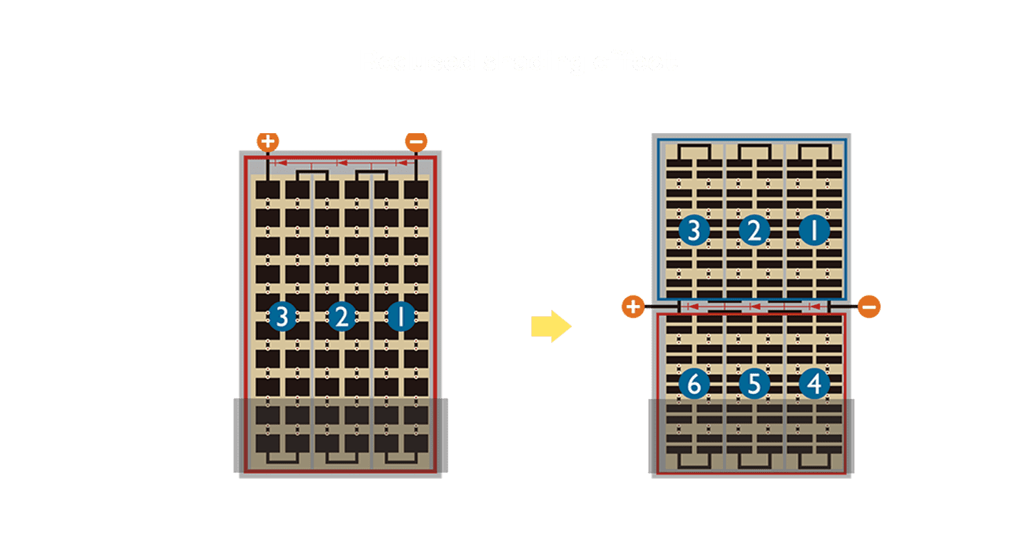 • 结合半切电池,,,,降低遮阴影响、、提升模组抗隐裂能力、、、、并减少电阻损耗,,进一步提升模组发电效能。。